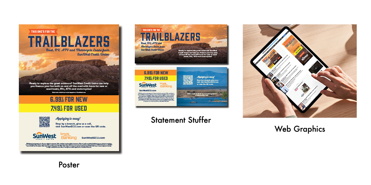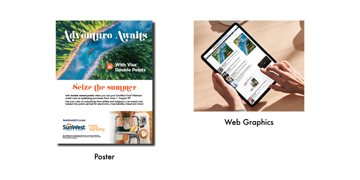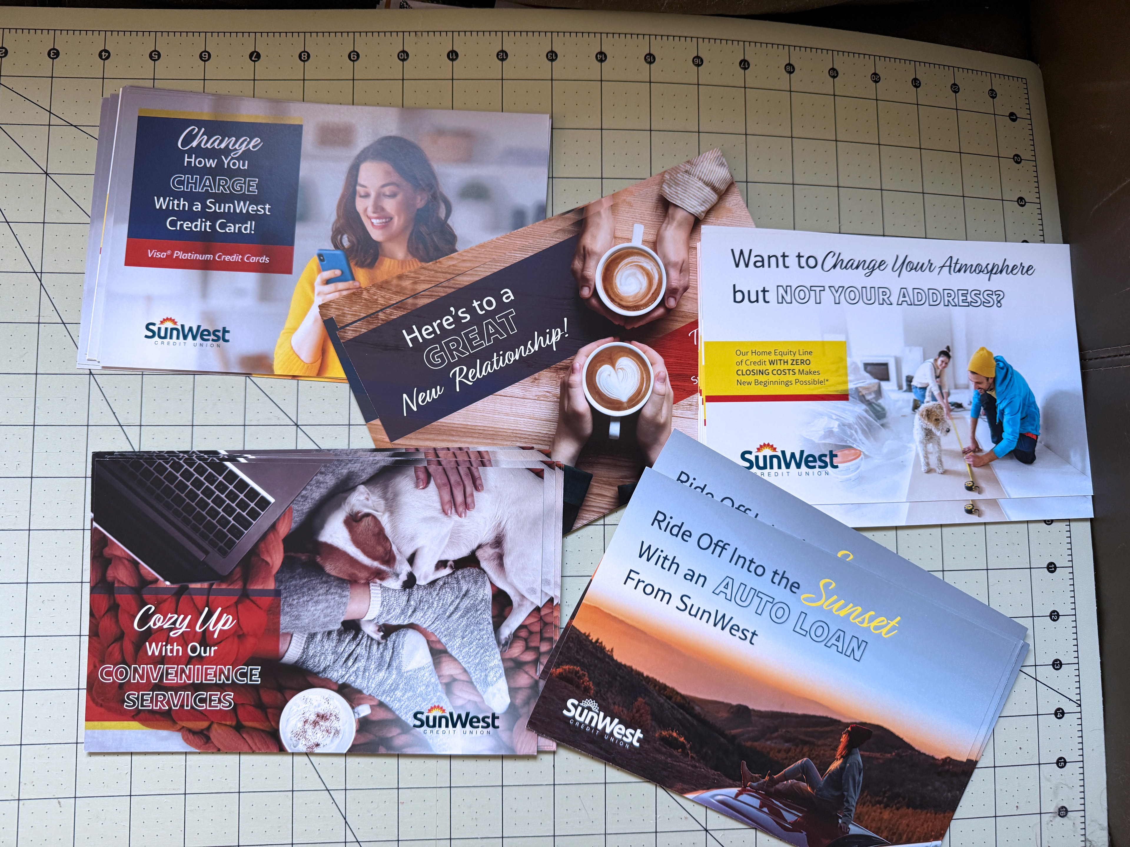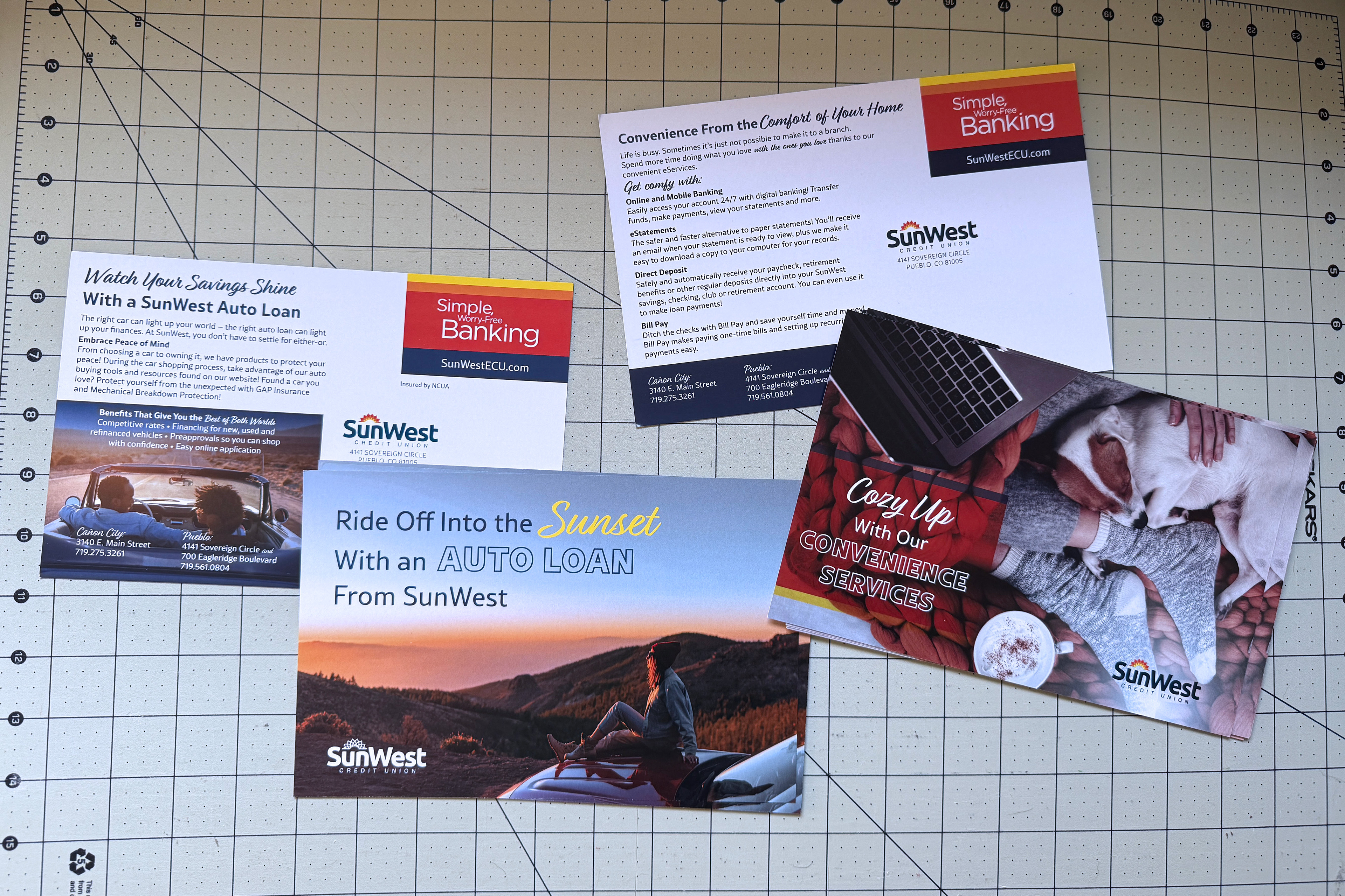 I loved working with SunWest Credit Union, based in southern Colorado. Their brand colors, logo, and aesthetic are fun to play with.